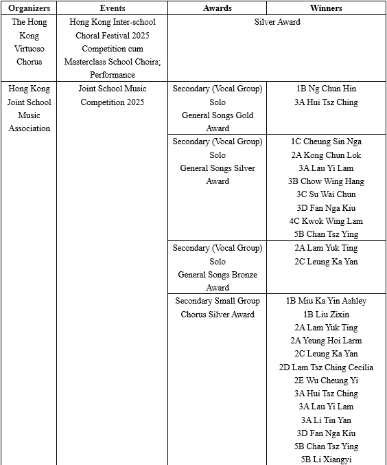 This year, our students participated in a series of music competitions, achieving excellent results and demonstrating great teamwork and passion for music. The list of awards is as follows: