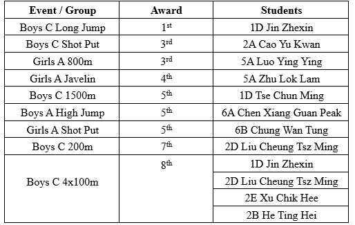 Competition: Tai Po and North District Secondary Schools Inter-school Athletics Competition Organizer: Hong Kong Schools Sports Federation