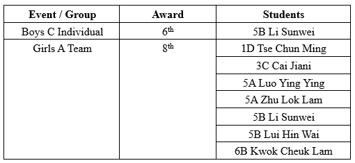 5D Chan Cheuk Ho, 5D Lui Chun Yin, 5D Qiu Sze Shing, 6B Lai Kei Tsan, 6C Tang Yee Shek,